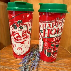 Set of Universal Studios Christmas Santa Souvenir CocaCola plastic Refill Cup