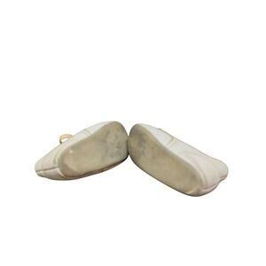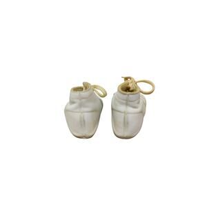 Baby shoes are from 1955, slightly worn, and has silver bells on the laces, knitted booties are from 1954, great condition with ties to tighten.
