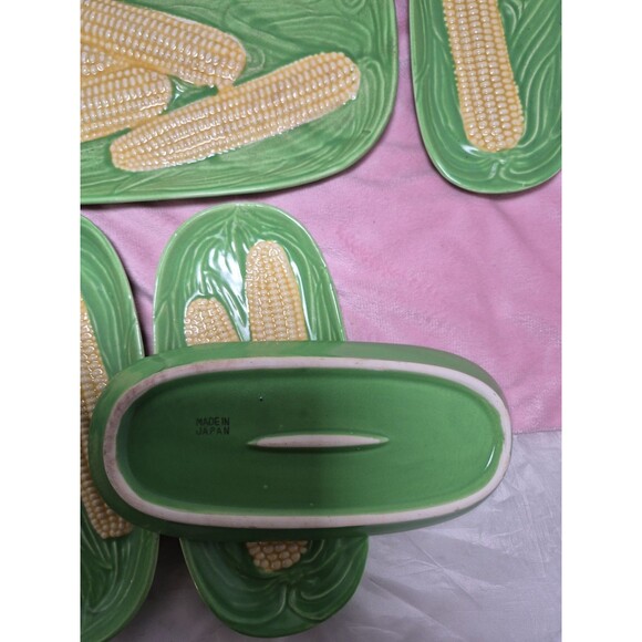 Set of Vintage Glazed Ceramic Corn on the Cob Plates 🌽 Japan