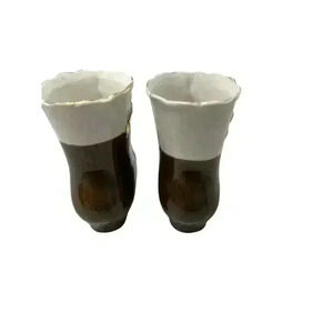 Set of Vintage Porcelain Miniature Shoe Vases Brown with Applied Flowers 3" Tall