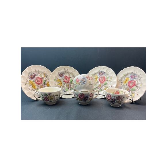 Perfect for afternoon tea parties, special gatherings, or as an elegant addition to your china collection, these vintage Sheraton tea cups and saucers by Johnson Brothers will bring a touch of sophistication and nostalgia to your table setting. Enjoy your favorite tea with a hint of vintage charm and floral elegance. Don't miss out on owning this lovely set!"