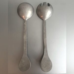 Set of cast aluminum salad servers with tennis racquet theme handles