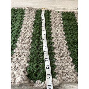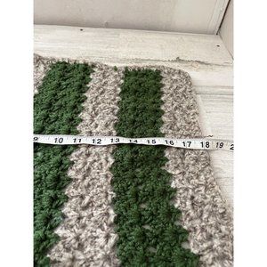 Set of crocheted green and taupe striped placemats. Two measure 15x18 approximately and match. One is 15x18 approximately. And one is 13x16 approximately. All good pre-owned condition.
