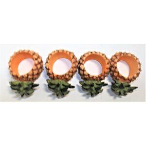 Set of four pineapple napkin rings. Large opening will accommodate larger napkins.