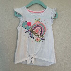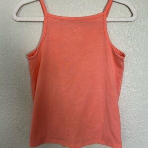 Set of girls tank tops size small. The white is a size small (5/6) and the peach is a 6. The peach colored top has a small spot on the front of it. I’ve tried to get it out but it’s not come out. There are pics of it in the listing.