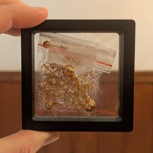Gold stud earrings, set of multiple pairs of various styles. Never worn, in original packaging.