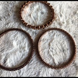 9.5 inch round, 1/4 inch or less wide. individual bangles. sold as set
