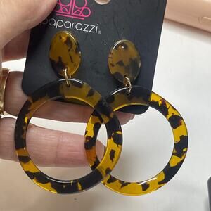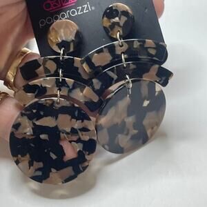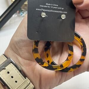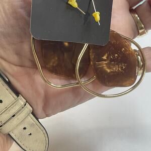 Set of three pairs of earrings tortoise gold tone dangle style boho trendy