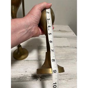 Set of three solid brass candlesticks. Made in India. Top is removable. Goid pre-owned condition.