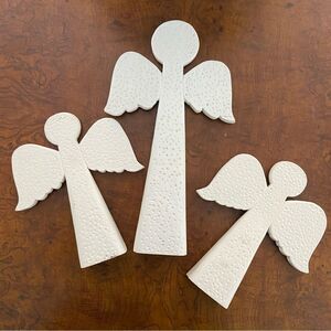 Set of three vintage modernist mid century carved wood Christmas angels white