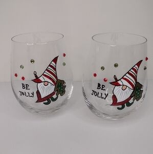 Set of two (2) wine glasses hand-painted Jolly elf s