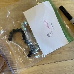 Black and min green faceted beads stretch bracelets set of two with silver tone cross pendants. About 7” long each unstretched.