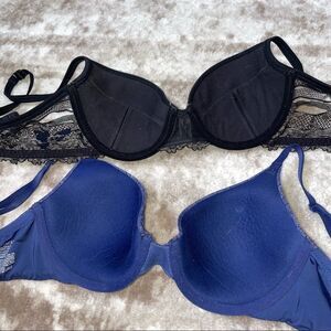 Set of two bra’s 32B gray and blue underwire padded push up bra's