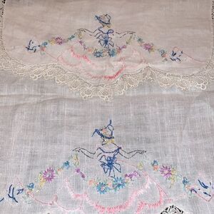 Set of two hand embroidered lady chair back