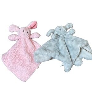 Set of two lovey's bunny pink gray fluffy baby toddler kids stuffy stuffed