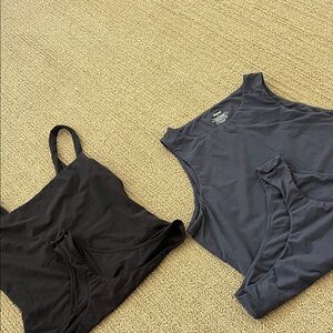 Set of two bodysuits in black and gray. Perfect for layering or casual wear. Good Preowned condition but no stains or rips. Signs of wear to writing on tag of black body suit.