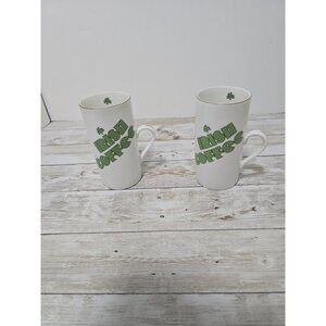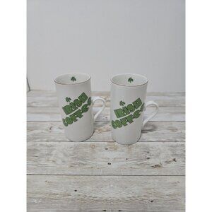 Set of two vintage Irish Coffee mugs with shamrock details and recipe