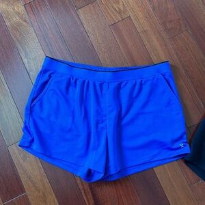 Set of women’s athletic shorts size large in black and a bright blue. They are from JCPenney. They are barely worn and very comfortable. Measurements are posted in the listing pics. They are a 3” inseam and about 17” across.