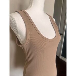 Abercrombie & Fitch Soft A&F Collection Set of 2 Medium Bodysuits White one shoulder and Ribbed scoop tank tan excellent condition like new!