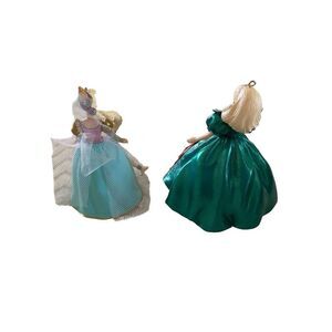 Set of 2 Barbie 2002 Rapunzel Barbie Holiday Ornament Mini Collectible Dolls Dec