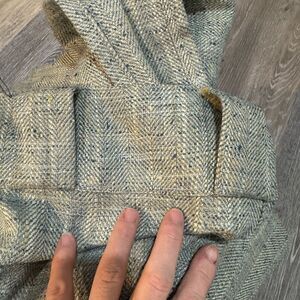Still in fantastic condition. I would describe the color as a blue/green. They measure 48” x 84”. Can be hung by rod pocket or back tabs.