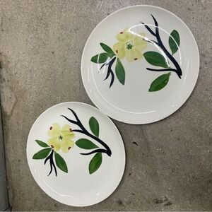 Set of 2 Dixie Dogwood ‘Joni’ hand painted dinner plates