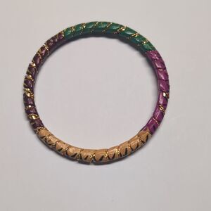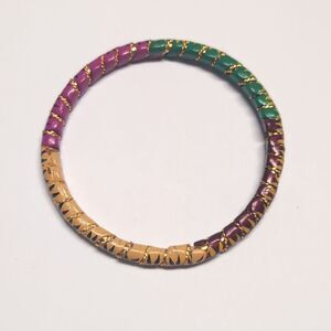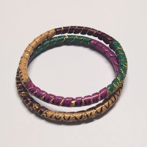Set of 2 Gold Multicolor Floral Painted Indian Metal Bangle Bracelets