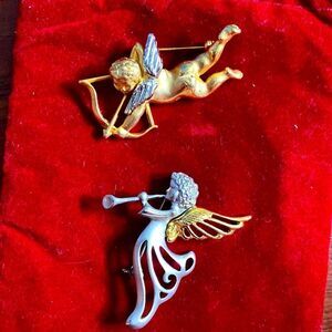 Set of 2 Gold & Silver Angel Cupid Brooches
