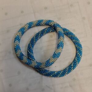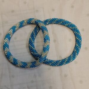 Set of 2 Sashka Bracelets - Blue & Silver