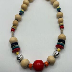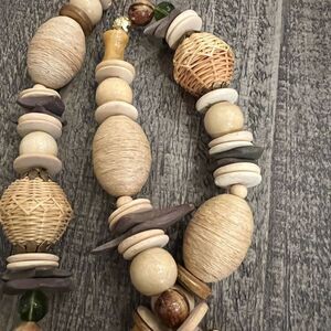 Set of 2 Wooden Beaded Statement Necklaces - Vintage