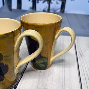 Set of 2 Arte Italica Vintage Grape Plum Design Tall Cups Mugs Made in Italy