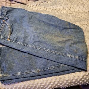 3 pairs of men's wrangler work jeans. 38x36 these are great work jeans. staining and any wear shown in pictures. very little wear besides stains