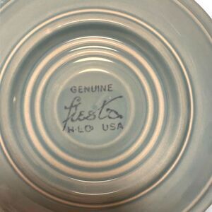 These vintage Fiesta saucers are in excellent condition. There are no chips or cracks. There is some minor scratching on the tops from normal use though. They are in the color turquoise, and based on the marking on the bottom were made between 1959 and 1969. One is a slightly different color than the rest. They are approximately 4” across.