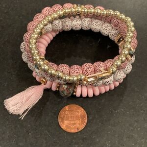 • Pink, cream, and gold tone beads