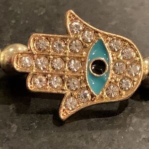 • Crystal-studded Hamsa with Evil Eye center