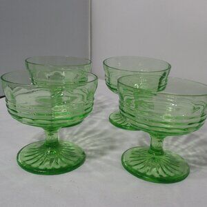 Set of4 Vintage Green Uranium Depression Glass Sherbet Pedestal Cups Dishes