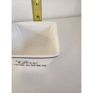 Set of 4 white and black appetizer bowls from Ciroa with "Give Thanks" on all four sides of each bowl. No cracks or chips detected throughout. Items will be properly packaged for shipping.