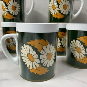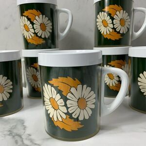 Set of 7 Vintage 70’s Thermo-Serv by West Bend double walled insulated retro Daisy coffee mugs. All great condition! Perfect for a vintage kitchen or camper!