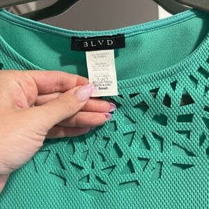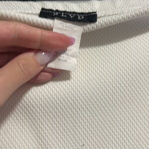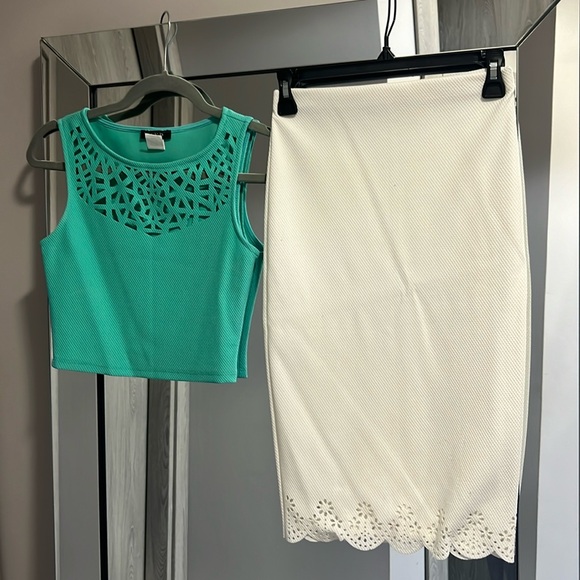 Size small shirt and skirt. Very nice on!!