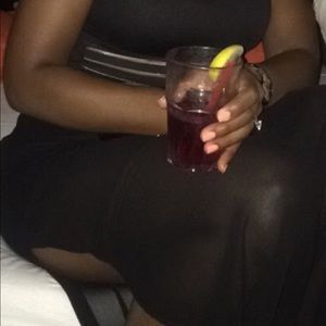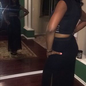 Black crop top , chiffon sheer skirt .. Deep splits on both side .. Black attached shorts underneath
