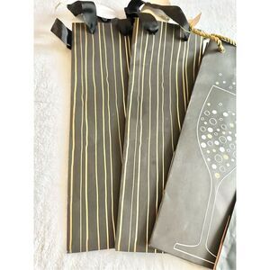 Set up for wine bottle gift bags - perfect for the holidays and New Year’s - black and gold theme