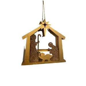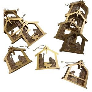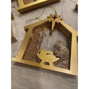 Set/10 New Pier One Gold Glitter Nativity Manger Ornament Christmas Holiday Tree