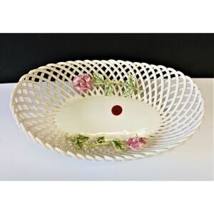 Set of (2) Baronia Poland Open Lattice Ceramic Rose Flower Bowls