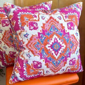 Set/2 Vibrant Pink & Orange Persian Design Outdoor Patio Pillow Cushion Covers