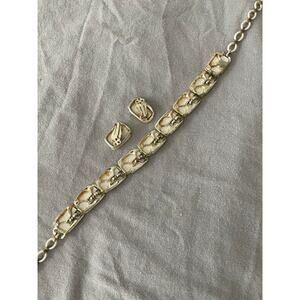 Set/2 Vintage White Textured Necklace and Earring Sets Lisner and Trifari Marked
