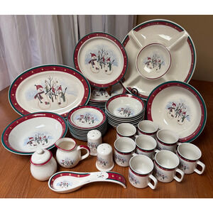 Set/4 Royal Season Salad Plates Stoneware Snowman Winter Christmas Dishes