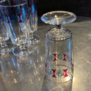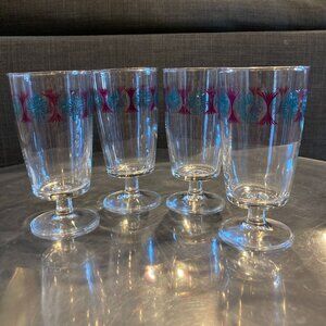 Set/4 Vintage Japanese Footed Juice Glasses by Aderia, Mid-Century Modern, Retro
