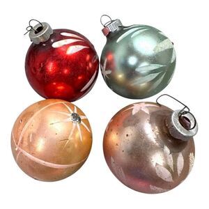 These vintage West German glass ornaments bring a classic touch to holiday decor. Star-themed designs in varied hues add a nostalgic charm. Display them on your Christmas tree for an elegant festive look.