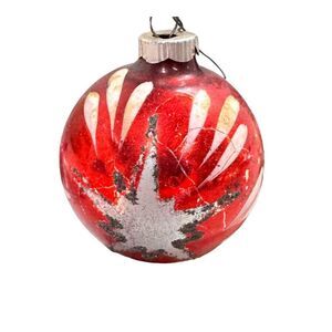 Set 4 Vintage West Germany Star Themed Glass Christmas Ornaments Gold Red Green