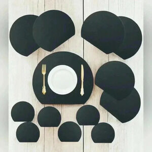Set/6 Faux Leather Placemats Blue Double Sided Heat Resistant Semi Circle NIB